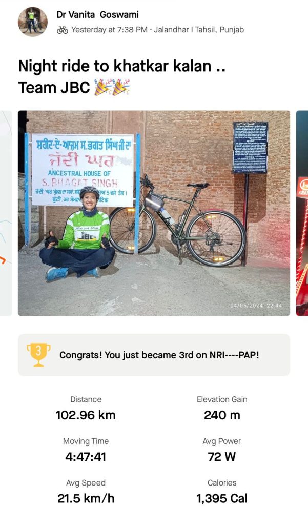 डॉ वनिता जहाँ एक मां और डॉक्टर हैं वहीँ वे एक साइकिलिस्ट भी हैं। इसके बारे में उन्होंने बताया कि जब 2019 में लॉकडाउन आया तो उनकी प्रैक्टिस में कमी आई , अहोस्पितल में जाना कम हो गया, ऐसे में उन्होंने साइकिल को अपन सहारा बनाया और एक साइकिल ग्रुप में शामिल हो गयी। जिसके बाद वे कभी नहीं रुकी। उन्होंने बताया कि सबसे लंबा सफ़र उन्होंने जालंधर से अमृतसर तक का साढ़े चार घंटे में पूरा किया जो 102 किलोमीटर था। रात के इस सफर में उन्होंने कई अनुभव किया। बता दें वे जालंधर की पहली महिला थी जो इतने लंबे सफर में साइकिल से गयी थी।