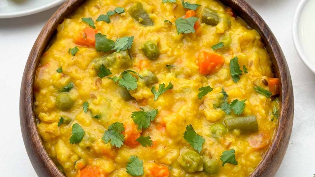 दाल और चावल से बनी खिचड़ी एक पारंपरिक और पौष्टिक भारतीय भोजन है। यह सरल, हल्का और पचाने में भी आसान होगा। दाल प्रोटीन का अच्छा सोर्स है, जबकि चावल कार्बोहाइड्रेट देता है। आप इसे अदरक और हल्दी के साथ पकाकर और भी ज्यादा पौष्टिक और स्वादिष्ट बना सकते हैं।