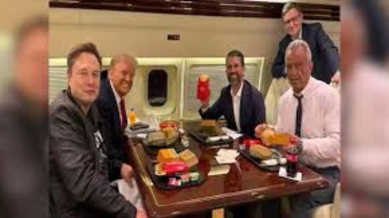 नवनिर्वाचित राष्ट्रपति डोनाल्ड ट्रंप ने अपने भावी स्वास्थ्य मंत्री को अमेरिका को फिर से स्वस्थ बनाने का जिम्मा सौंपा था। लेकिन इस बीच एक तस्वीर वायरल हो रही है, जिसमें ट्रंप, उनके बेटे ट्रंप जूनियर, टेस्ला के सीईओ एलोन मस्क और भावी हेल्थ मंत्री आरएफके जूनियर बर्गर खाते हुए पोज़ दे रहे हैं। ट्रंप जूनियर ने यह तस्वीर सोशल मीडिया प्लेटफॉर्म X (पूर्व में ट्विटर) पर शेयर की, जिसमें कैप्शन था – मेक अमेरिका हेल्दी अगेन प्रोग्राम कल से शुरू होगा। तस्वीर में आरएफके जूनियर बर्गर खाते हुए दिखाई दे रहे थे, जिसे लेकर सोशल मीडिया पर बवाल मच गया।