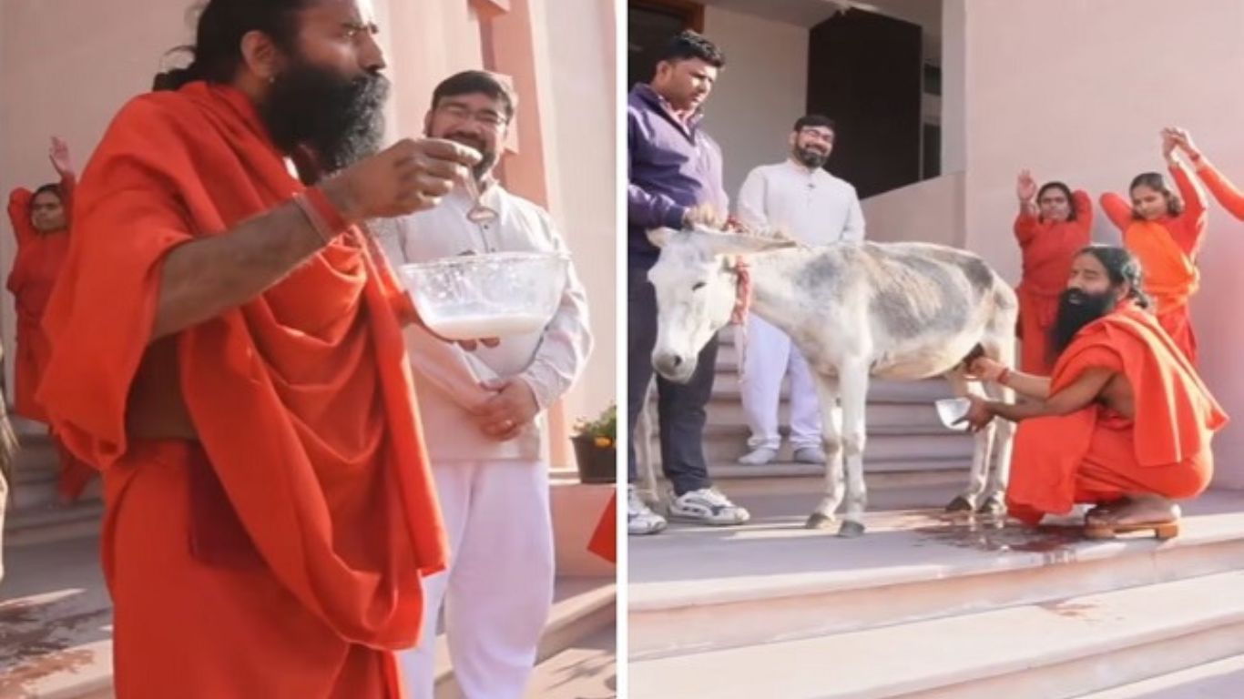 इन दिनों गुरु बाबा रामदेव का एक नया वीडियो सोशल मीडिया पर तेजी से वायरल हो रहा है। इस वीडियो में बाबा रामदेव गधी का दूध निकालते हुए इसे पीते हैं और इसके कई लाभों के बारे में जानकारी देते हैं। वीडियो को उन्होंने अपने एक्स हैंडल पर साझा किया है, जिसे लोग बड़े उत्साह से देख और शेयर कर रहे हैं।