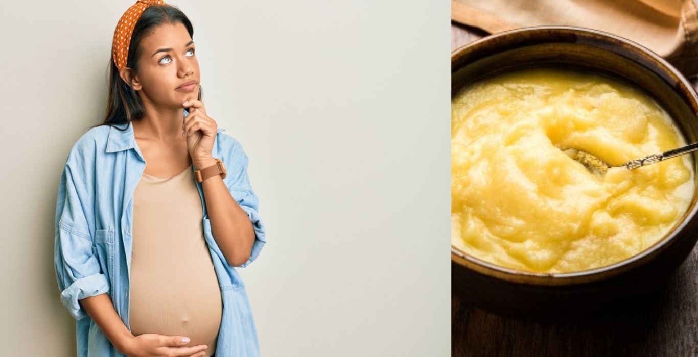 प्रेग्नेंसी हर महिला के लिए बहुत खास समय होता है। इस दौरान वह जो भी खाती है उसका सीधा असर गर्भ में पल रहे बच्चे पर होता है ऐसे में भ्रूण का विकास शारीरिक और मानसिक तौर पर अच्छे से हो पाए इसके लिए जरुरी है कि महिलाएं अच्छी डाइट लें। ऐसे में महिलाओं को प्रेग्नेंसी में कई चीजें खाने के लिए मना भी किया जाता है क्योंकि ये भ्रूण के स्वास्थ्य पर बुरा असर डालती हैं। वहीं कुछ लोगों का यह भी मानना है कि प्रेग्नेंसी के शुरुआती महीनों में महिलाओं को घी नहीं खाना चाहिए क्योंकि ये भ्रूण पर चिपक जाएगा। ऐसे में आपको इस आर्टिकल के जरिए बताते हैं कि क्या सच में प्रेग्नेंसी में घी नहीं खाना चाहिए।