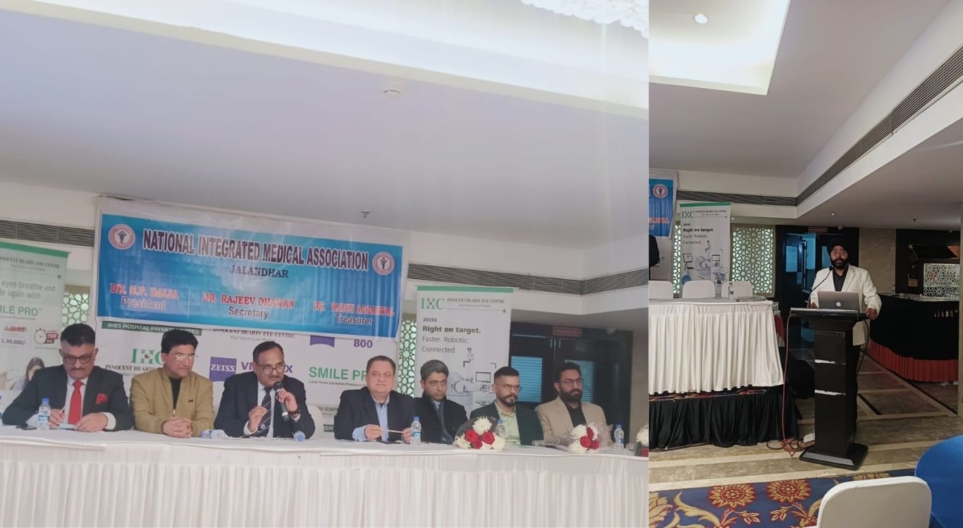 नीमा जालंधर की ओर से आज स्थानीय होटल में सीएमई का आयोजन किया गया। इस सीएमई का आयोजन नीमा जालंधर के प्रेजिडेंट डॉ. एस.पी डालिया की देखरेख में हुआ। इसमें इनोसेंट अस्पताल के प्रमुख आई स्पेशलिस्ट डॉ. रोहन बौरी तथा डॉ. सौरभ सूद ने लोगों को खास जानकारी दी। सीएमई की शुरुआत धन्वंतरि पूजा के साथ हुई। इसके बाद नीमा जालंधर के सेक्रेटरी डॉ. राजीव धवन ने आए हुए सभी मेहमानों का स्वागत किया। मंच का संचालन डॉ. सतबीर सिंह ने बहुत अच्छे से किया।