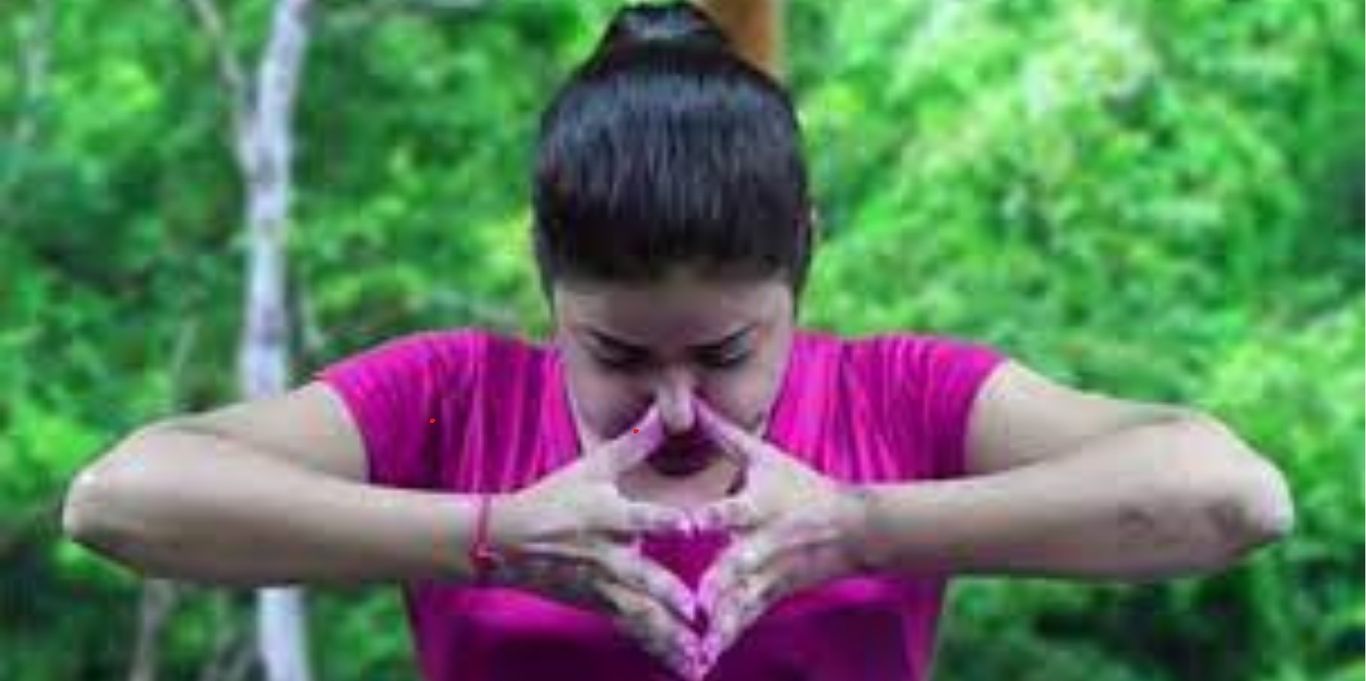 फिर, दोनों अंगूठों की मदद से नाक को बंद करें और चेहरे को थोड़ा झुका लें। इस स्थिति में आपका चिन गर्दन से टकराए।